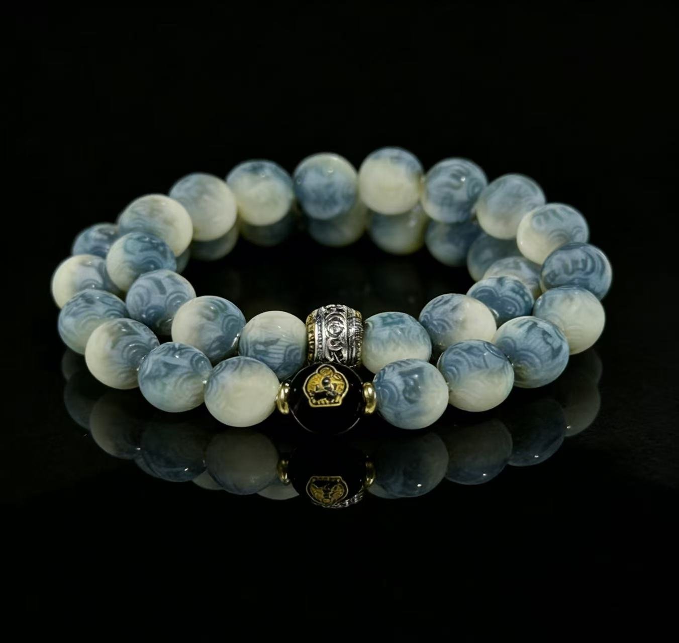 The bracelet is made of Bodhi, symbolizing enlightenment and wisdom in Buddhist culture, and serving as a spiritual sustenance for practitioners seeking inner clarity.